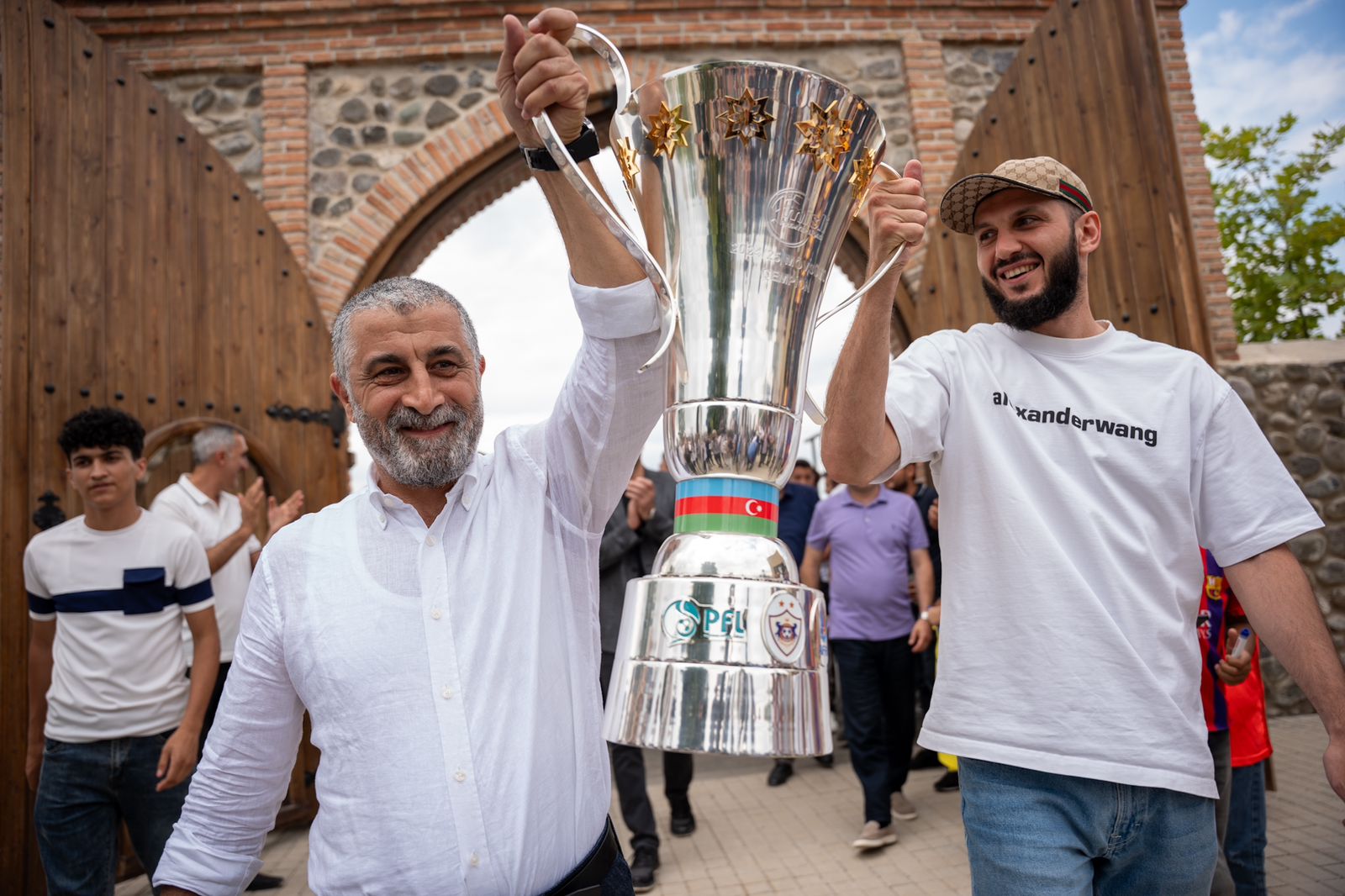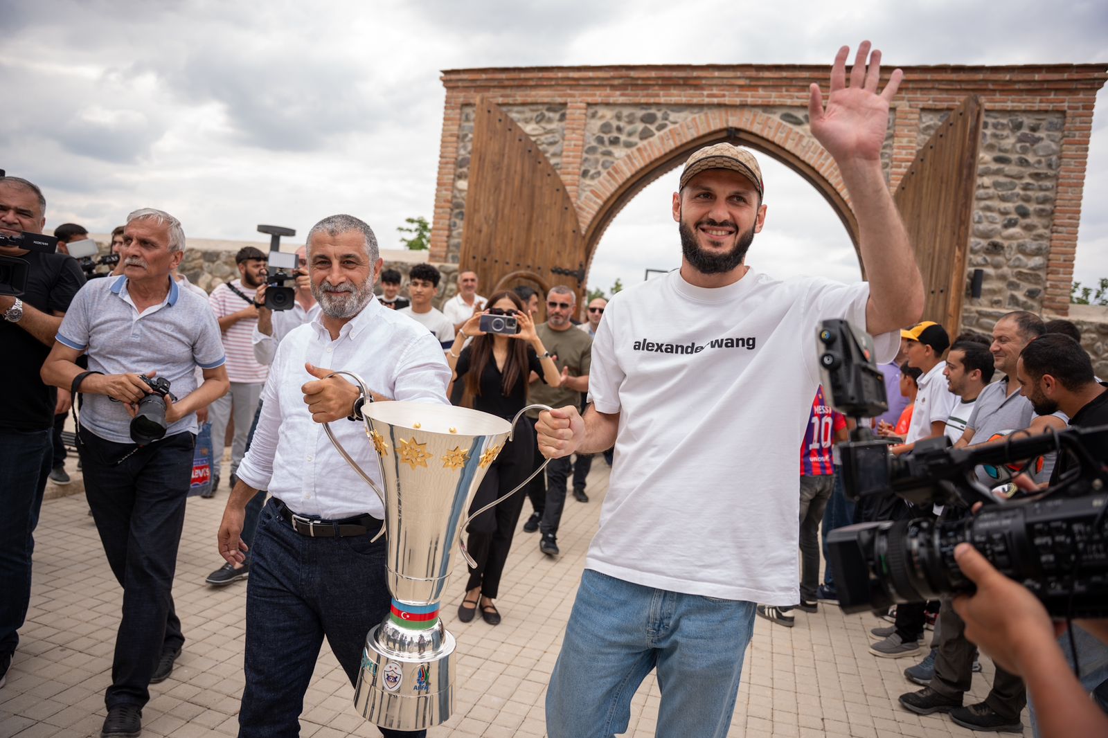 Tarixi stadionun yerləşdiyi, hazırda "İmarət" kompleksi kimi fəaliyyət göstərən mərkəzdə Ağdam sakinləri doğma komandalarını coşqu ilə qarşılayıblar. Çempionluq kubokunu azarkeşlərə kapitan Bədavi Hüseynovla yanaşı, klubumuzun əfsanəvi futbolçularından olmuş, hazırda baş məşqçi Qurban Qurbanovun köməkçisi kimi fəaliyyət göstərən Müşfiq Hüseynov nümayiş etdirib. Məkanlar barədə klub üzvlərinə ətraflı məlumat verilib. "Qəhrəmanları" ilə görüşdən məmnunluq bildirən sakinlər futbolçu və məşqçilərlə şəkillər çəkdirdikləri üçün şad olublar. Komanda üzvləri ardından Ağdam Cümə Məscidini ziyarət ediblər.