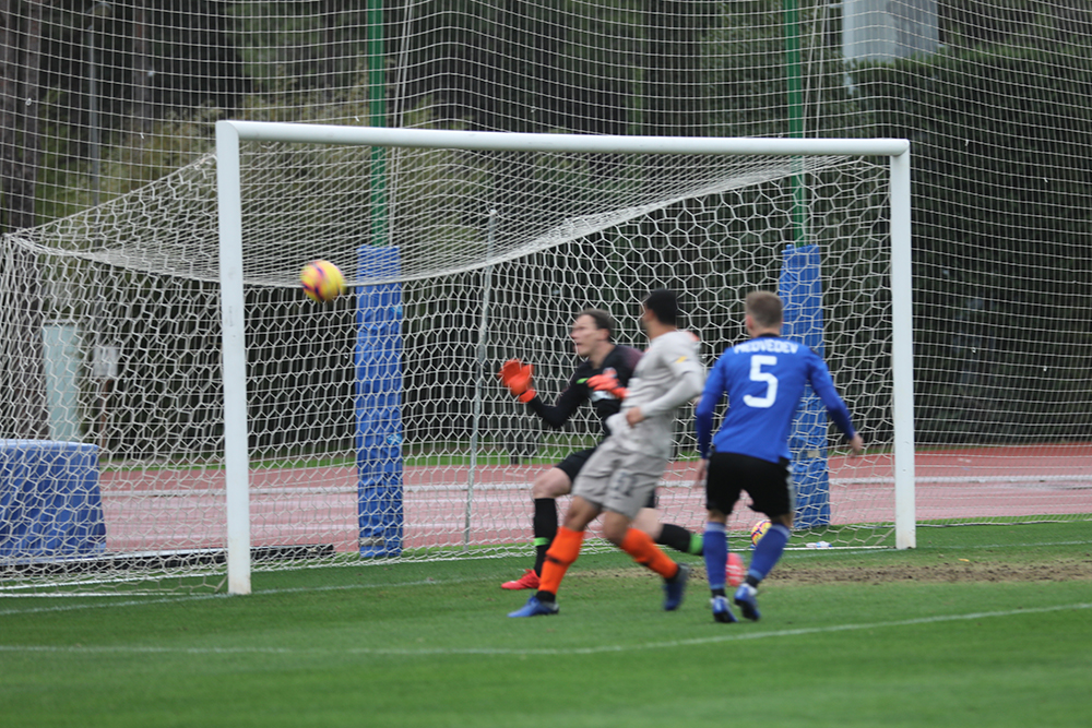 11` Maksim Medvedevin qapıya zərbəsindən sonra top dirəyə dəyir.