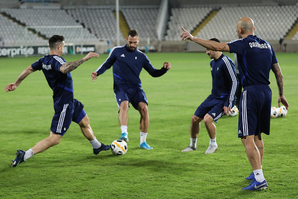 "Qarabağ"ımız Avropa Liqasının IV turunda sabah səfərdə APOEL-in qonağı olacaq. Komandamız bu gün oyunöncəsi son məşqinə çıxıb. Qarşılaşmanın keçiriləcəyi GSP stadionunda baş tutan hazırlıq Bakı vaxtıyla saat 21:30-da start götürüb və təxminən 60 dəqiqə davam edib. Məşqin ilk 15 dəqiqəsi mətbuat üçün açıq olub.