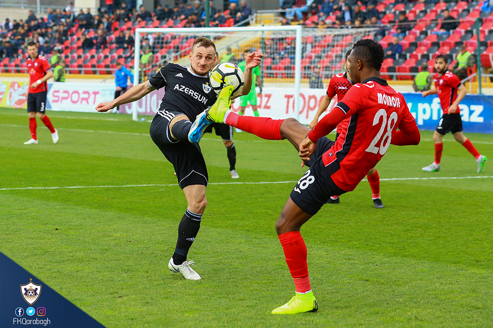 Bu gün Azərbaycan Premyer Liqasında XXIII turun oyunları keçirilir. "Qarabağ"ımız səfərdə "Qəbələ"nin qonağı olub. Oyuna sürətli başlayan komandamız matçın 3-cü dəqiqəsində hesabı açıb. Künc zərbəsindən sonra Donald Gerrye topu qapıdan keçirib. Matçın 23-cü dəqiqəsində Rəqib hesabı bərabərlşdirib. Oyunun 80-ci dəqiqəsində meydana daxil olan Araz Abdullayev 3 dəqiqə sonra komandamıza hesabı öz xeyrinə dəyişdi. Zubirin ötürməsindən sonra qapıçıyla təkbətək qalan Araz topu qapıdan keçirib. Qalan dəqiqələrdə qol vurulmayıb və komandamız səfərdən 2:1 hesablı qələbəylə qayıdır.