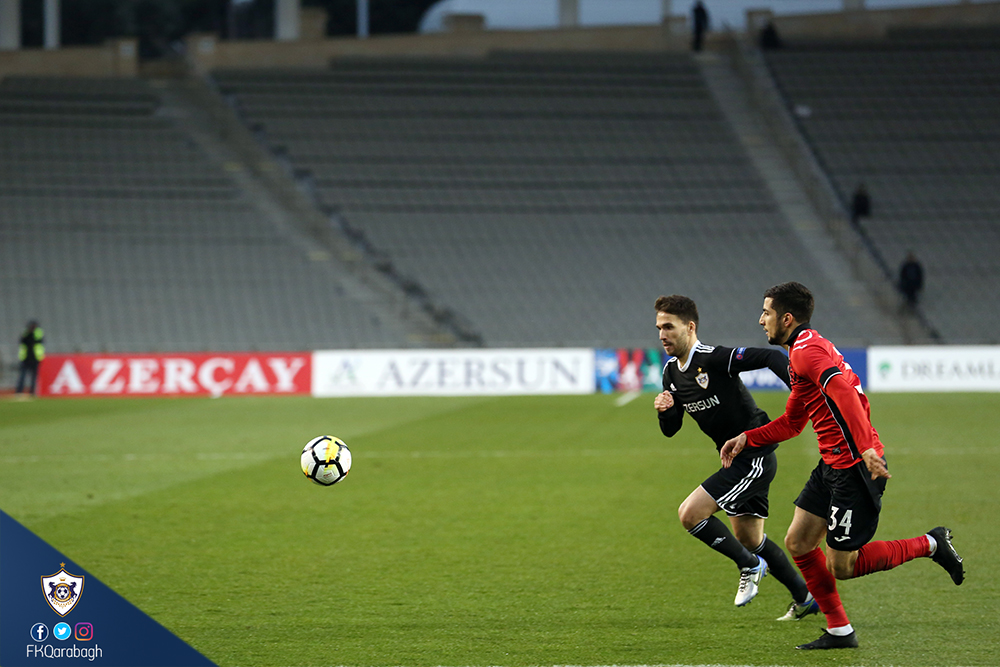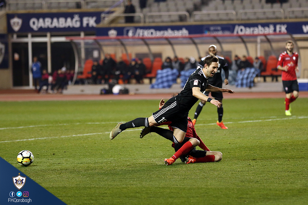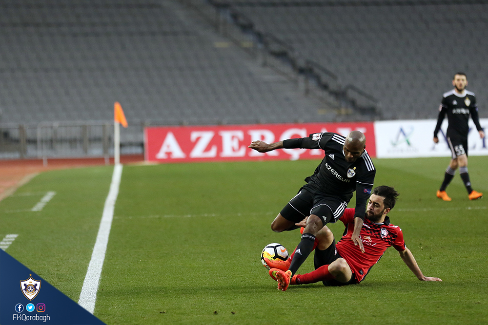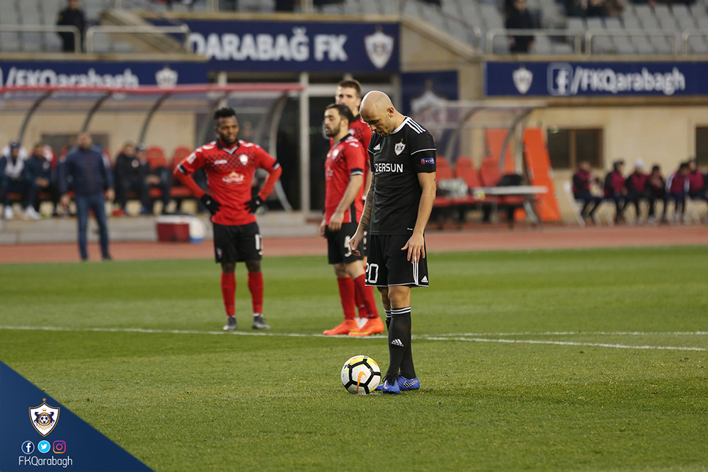Bu gün "Qarabağ"ımız Azərbaycan Premyer Liqasının XVII turunda "Qəbələ"ni qəbul edib. Tofiq Bəhramov adına Respublika stadionunda keçirilən qarşılaşma komandamızın 2:1 hesablı qələbəsiylə başa çatıb. Komandamız matça erkən qolla bşlayıb. 3-cü dəqiqədə Riçard Almeyda penalti zərbəsindən hesabı bərabərləşdirib. Matçın 27-ci dəqiqəsində isə rəqib penaltidən sonra hesabı bərabərləşdirib. Bu qoldan 3 dəqiqə sonra Filip Ozobiç möhtəşəm zərbəylə hesabı 2:1 edib. Matçın qalan dəqiqələrində hər iki komanda qol epizodları yaratsa da, bu fürsətlərdən istifadə edə bilməyib və qarşılaşma komandamızın 2:1 hesablı qələbəsiylə başa çatıb.