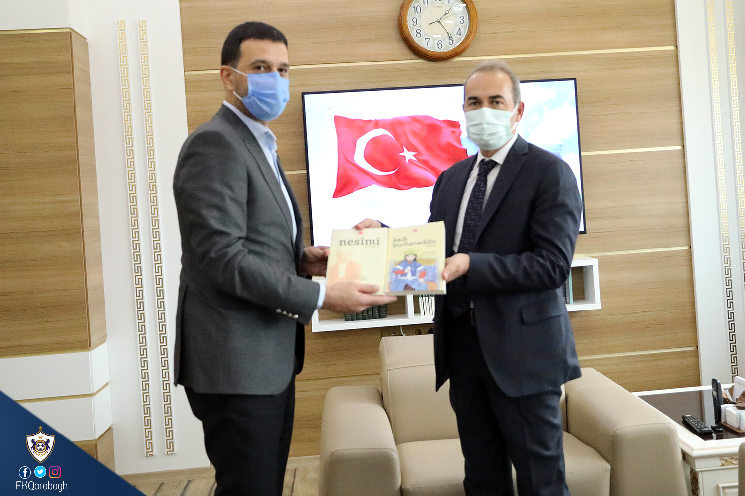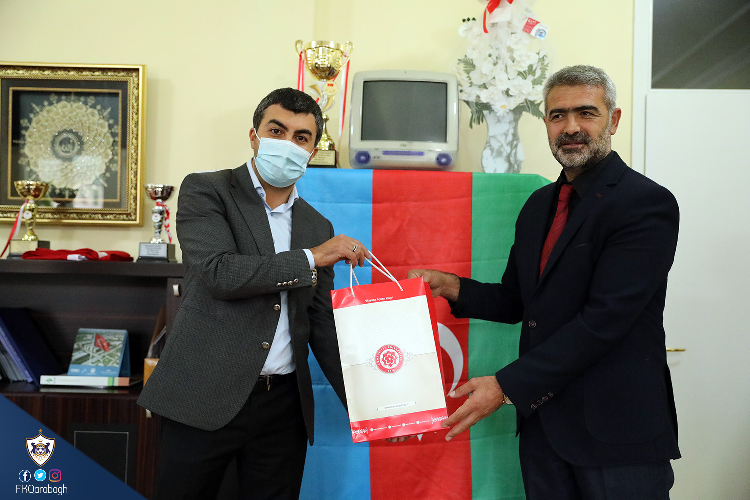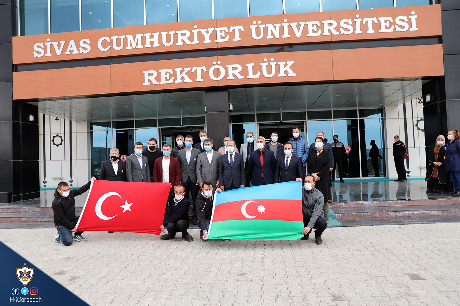 Bu gün "Qarabağ"ımız Avropa Liqasının III turunda səfərdə qardaş ölkənin "Sivasspor" klubu ilə qarşılaşacaq. Klubumuzun direktoru Emrah Çelikel, baş menecerimiz Asif Əsgərov və digər idari heyətimiz bu gün Sivas Cümhuriyyət Universitetinin rektoru Alim Yılmaz və digər əməkdaşları ilə görüşüb. Görüşdə rektora "Qarabağ"ımız forması xatirə kimi təqdim olunub, eyni zamanda klubumuzun idarə heyətinə universitetin xatirə hədiyyələri də verilib. Sonda isə xatirə şəkili çəkilib.